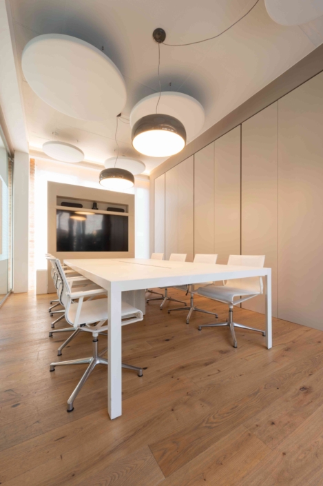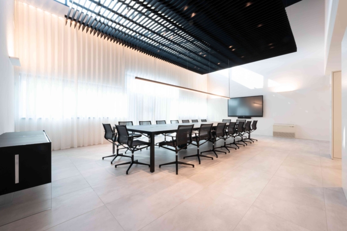 Las soluciones preferidas para quienes ya han confiado en nuestros servicios a medida son los paneles fonoabsorbentes de pared o techo. Puede elegir la forma, el tamaño y la tela y el color de la tapicería; Además, se puede optar por integrar altavoces y focos LED para dar un toque original a la sala de conferencias y mejorar el confort ambiental a 360 °.