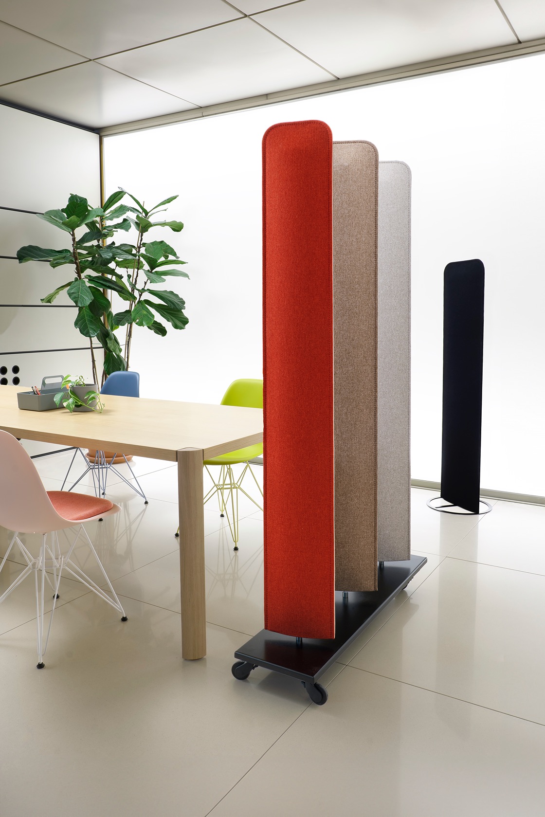 De los paneles divisorios absorbentes de sonido móviles de LvB Italia , Ouverture es uno de los más fáciles de transportar y uno de los más versátiles.