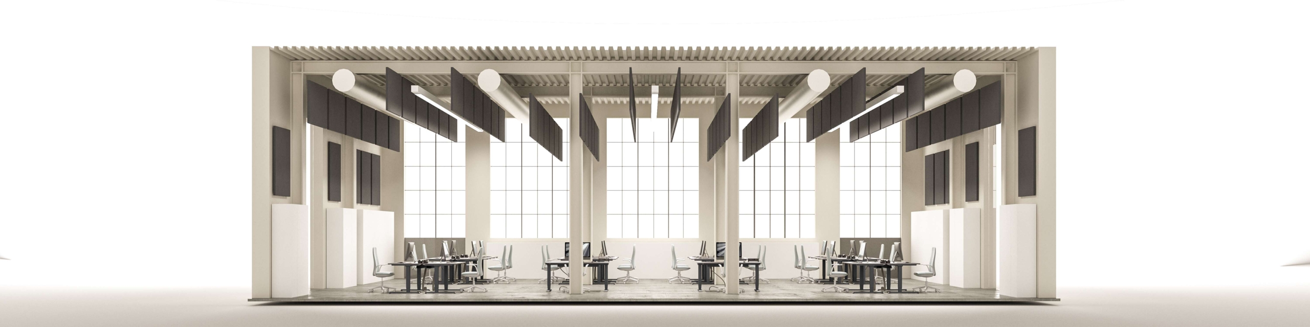 Los paneles Preludio se pueden colocar fácilmente en cualquier ambiente, con una marcada utilidad para estancias con techos especialmente altos: son la solución ideal para oficinas, call center y espacios abiertos.