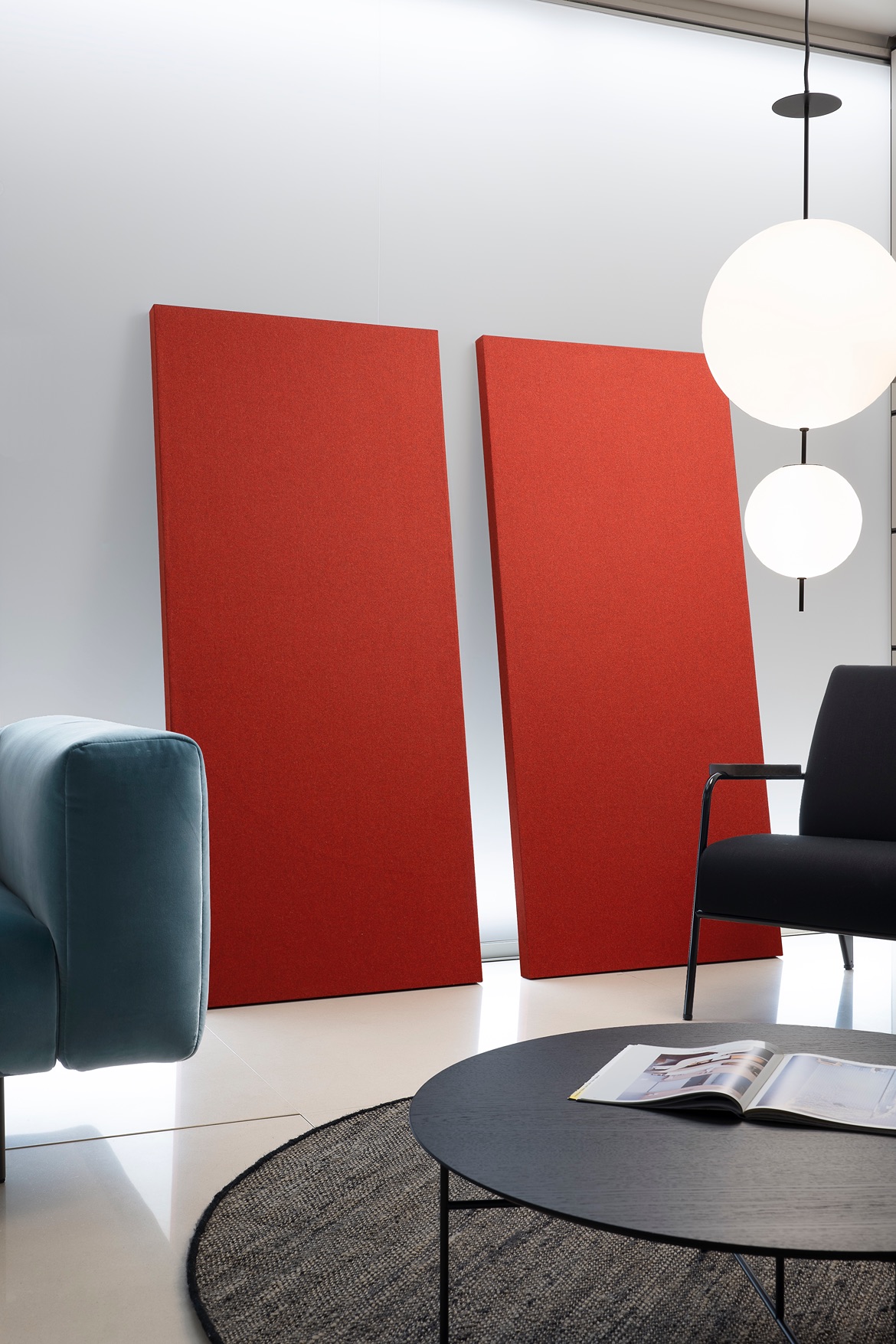 El panel Quartetto se puede fijar a la pared con tiras adhesivas tipo velcro, de lo contrario se puede optar por una fijación con espaciadores metálicos cromados para aumentar su eficacia acústica.